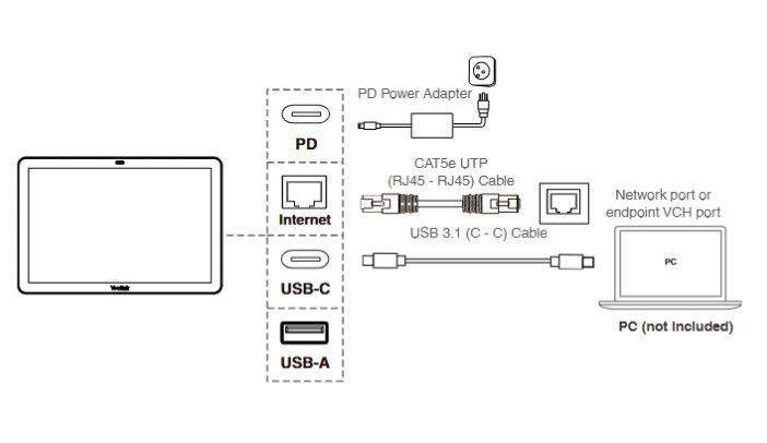 Один кабель Cat5e от терминала к сенсорной панели управления, обеспечивает питание PTC25 и подключение к сети без дополнительных кабелей. Кроме того, один кабель USB-C от PTC25 до ПК позволяет обмениваться данными в формате 4K, BYOD и PDcharging.