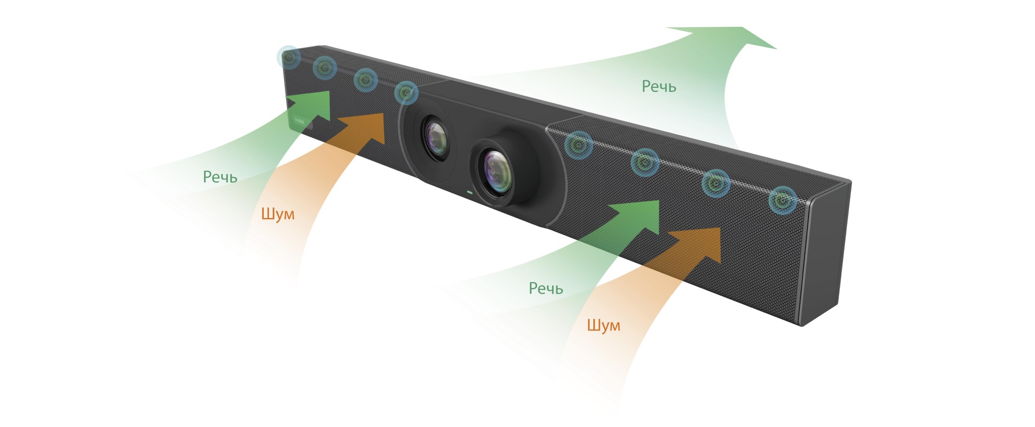 Yealink MeetingEye 600 оснащен передовыми технологиями искусственного интеллекта. Это позволяет камере кадрировать всех участников звонка или автоматически наводиться на говорящего в зависимости от выбранного режима работы. Автоматическое управление и продвинутые алгоритмы помогут всем участникам видеоконференции сосредоточиться на собрании. Сочетание двух камер дает более четкую картинку, лучше отслеживает лица и быстрее наводится на выступающего. Высокое качество звука